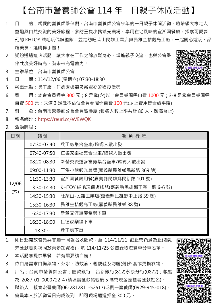 114年12月6日一日親子休閒活動~邀請大家來參加
